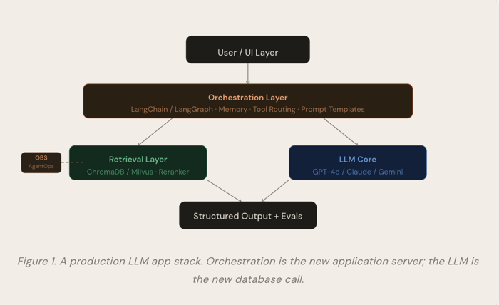 Let me be direct: there are roughly four problem domains every LLM app has to solve, and there's already a reasonably mature solution for each. You don't need to evaluate all forty tools that showed up at the last AI conference. You need to understand the category, pick the right tool for your scale, and ship.
